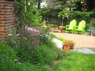 Of course your guests need comfy places to sit, so how about upcycling a great yard sale find (an old wicker chair or paint-peeling patio set) into a patio treasure with a quick new spray low-VOC paint job? Or you could splurge on a pair of Adirondack chairs made of recycled milk jugs, available at the Blue Ridge Eco Shop in a variety of joyful colors ($275; see p. 10).