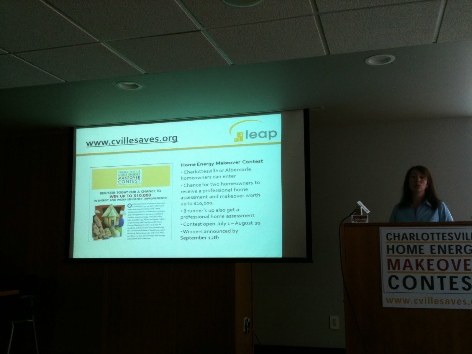 Today was the opening announcement of Charlottesville’s Home Energy Makeover Contest today at City Space and Betty was there among industry leaders, politicians, environmental activists, several Betty board members, and press to hear about the program. Energy is a ‘hot’ topic these days, so let Betty tell you how to ‘cool’ your energy costs and possibly win a makeover!